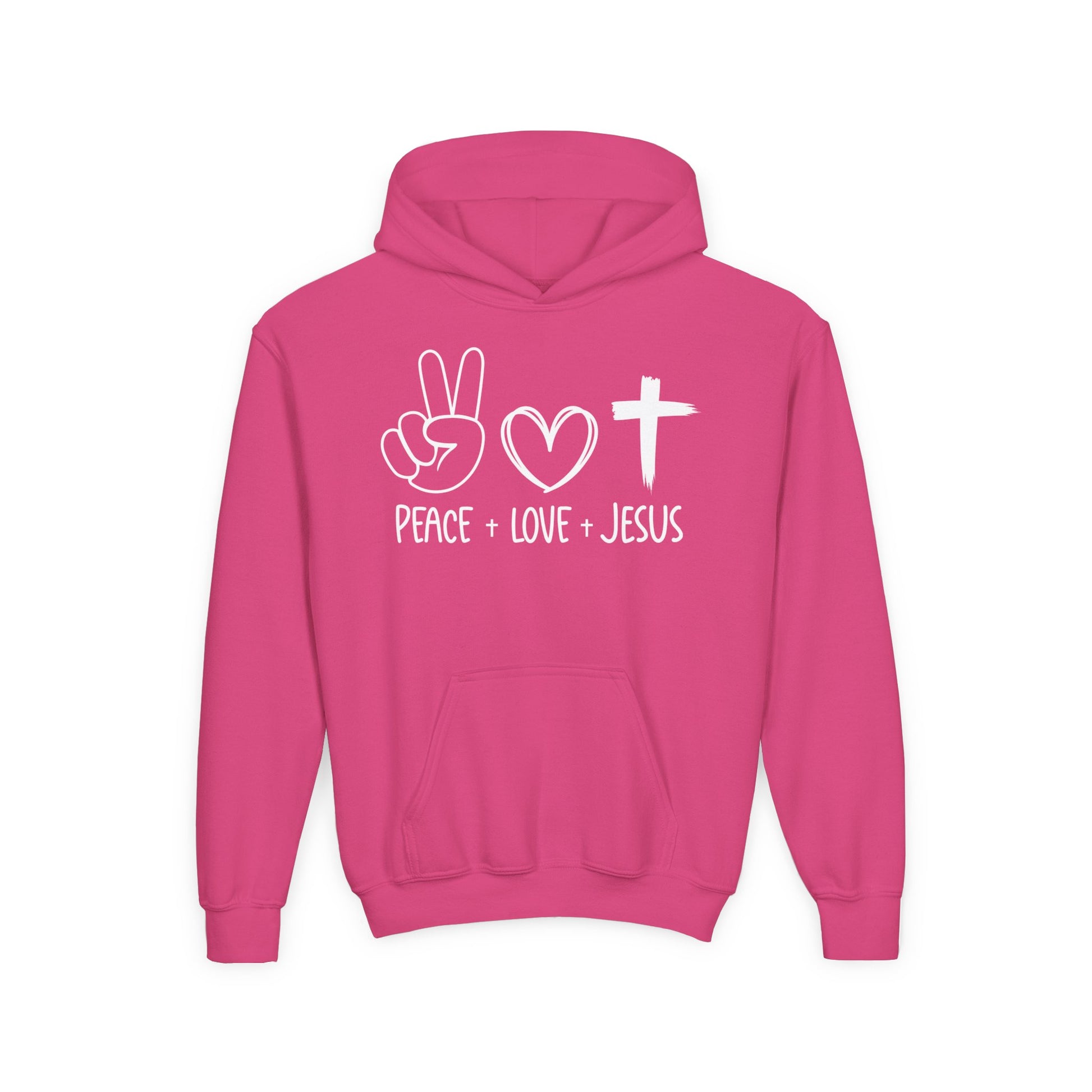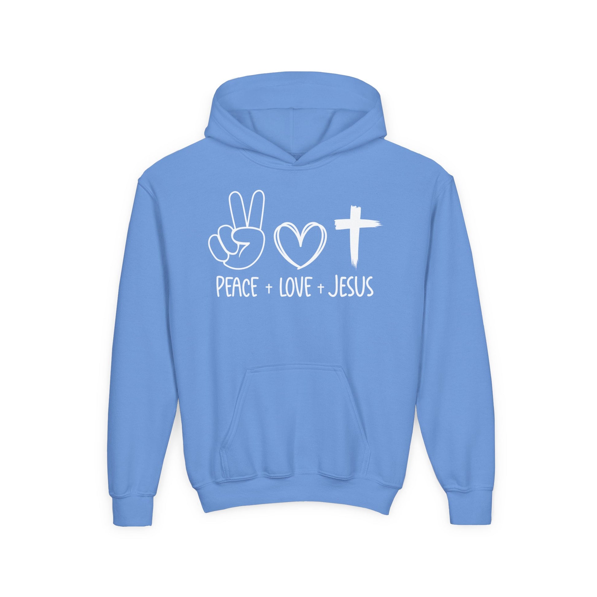 PEACE LOVE JESUS - YOUTH MEDIUM-HEAVY WEIGHT HOODIE