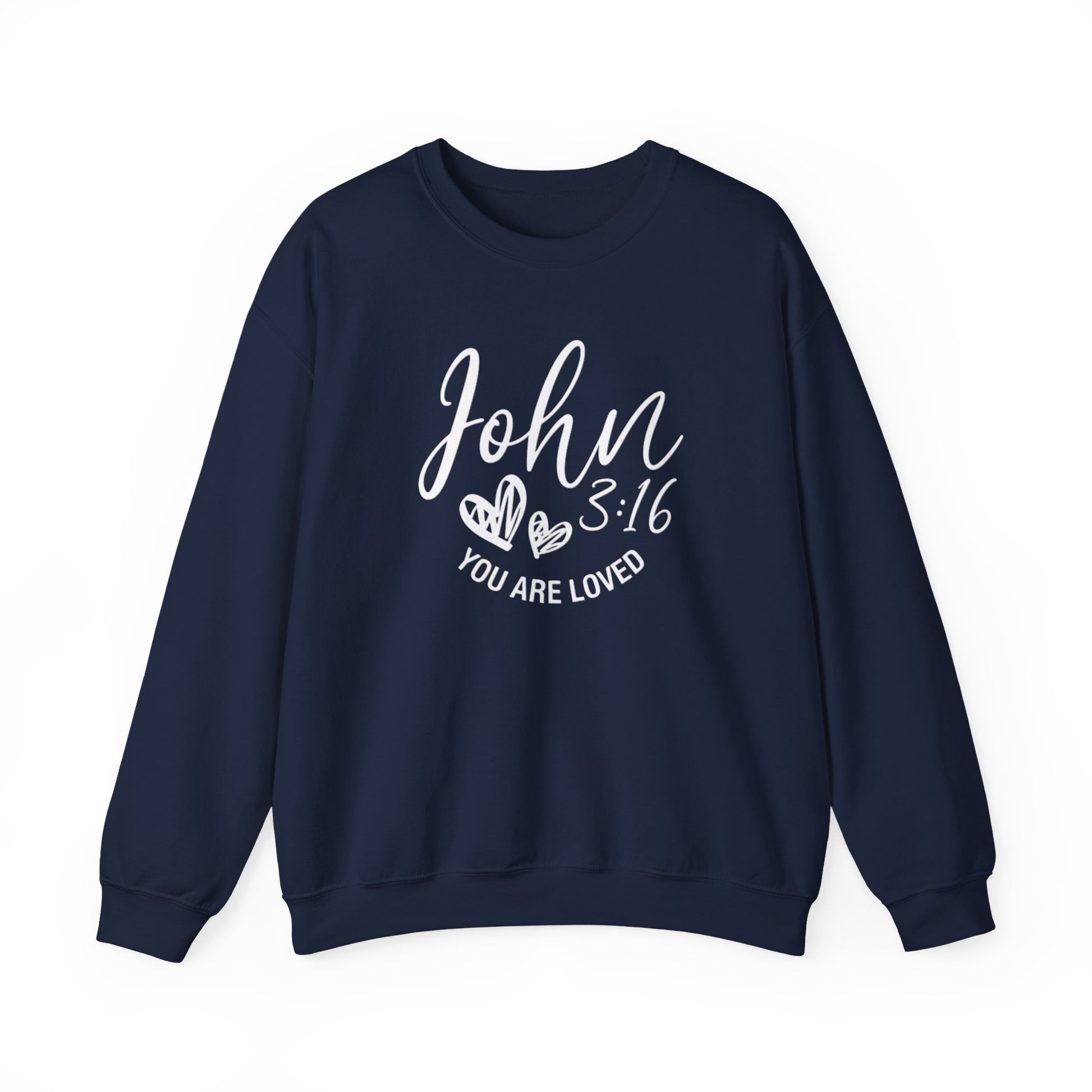 This cozy crewneck sweatshirt carries a quiet, heartfelt message — “John 3:16” with small hand-drawn hearts and the words “You Are Loved.” The soft, medium-heavy 50/50 cotton-poly blend drapes comfortably and holds its shape, while the ribbed collar and double-needle stitching make it durable enough for everyday wear. It’s the kind of sweatshirt you reach for on slow mornings, church gatherings, volunteer days, or when you want to share a gentle reminder of faith and belonging. Subtle, warm, and thoughtfully made, it feels like an easy way to wear and share hope without saying too much.